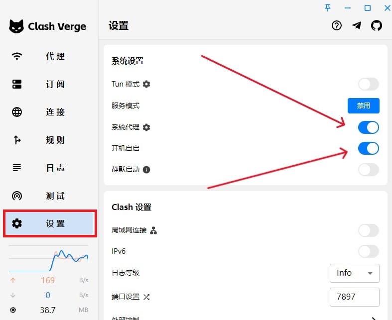 1. 打开 Clash Verge 选择 [设置] 打开 [系统代理] 右边的开关,能正常访问 https://youtube.com 表示开启代理成功